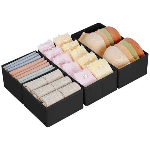 DIMJ Organisateur de Tiroirs De Rangement - Séparateurs de Tiroir Non Tissés, Boîte Organisateur Dressing Rangement Gain de Place Pour Chaussettes, Sous-VêTements, Cravates, 4 Pièces Noir