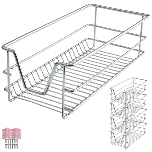 TecTake® Lot de 4 Tiroir coulissant Cuisine, 40 cm, Organisateur placard, Tiroirs/Paniers télescopiques en acier, Rangement Cuisine, Dressing, Chambre, Garde manger, Bureau, Rangement sous evier