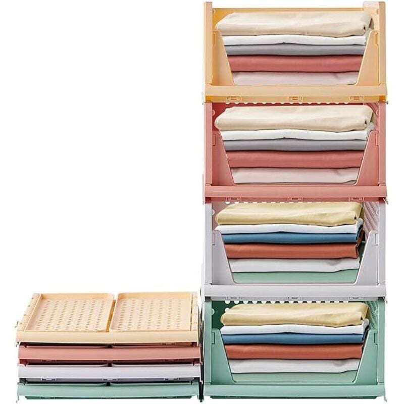 4 pcs Organisateur Armoire Vetement Plastique Boite Rangement Vetement Pliable et Empilable Organisateur Tiroir Coulissant pour Penderie, Dressing,