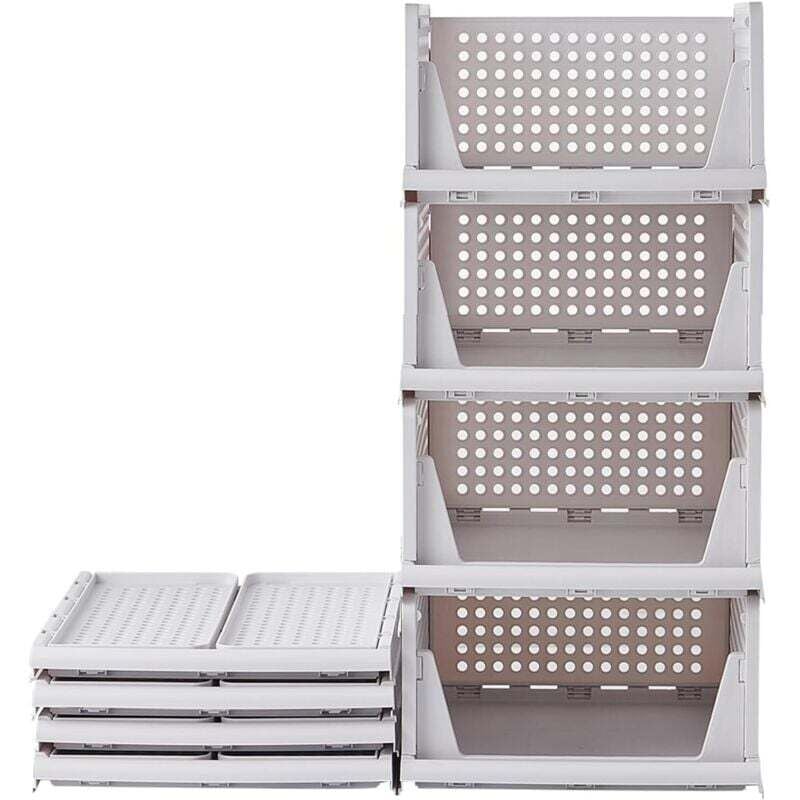 WODFARR Organisateur Tiroir et Armoire Pliable, Rangement Dressing Empilable, Boîte de Rangement Placard pour Salle de Bain, Cuisine, Buanderie, Blanc-33.5 * 43 * 56cm