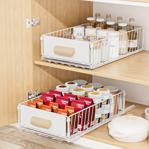 Tiroir Coulissant Cuisine, Organisateur D'Armoires De Cuisine, Organisateur de Tiroirs pas Besoin de Percer Panier Coulissant Cuisine pour Rangement Cuisine Dressing, 24.5x37.5x10CM