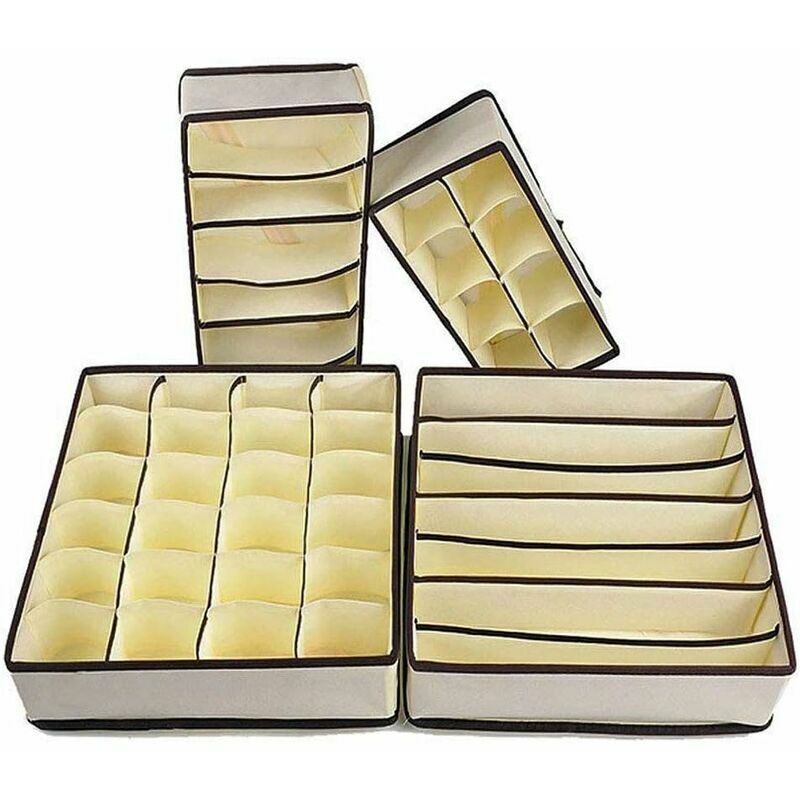DIMJ Organisateur de Tiroirs De Rangement - Séparateurs de Tiroir Non Tissés, Boîte Organisateur Dressing Rangement Gain de Place Pour Chaussettes, Sous-VêTements, Cravates, 4 Pièces Beige