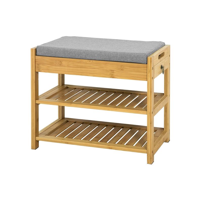 Banc De Rangement Chaussures 3-en-1 En Bambou Massif Avec Siège Rembourré Et Tiroir Secret, Gain De Place, Pour Entrée Étroite/Dressing,