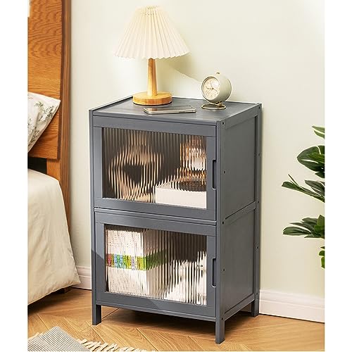 SXABKNEO Table de Chevet en Bois Massif avec étagère de Rangement, Meuble de Chambre Moderne pour Ranger Vos Essentiels - Élégante Table de Chevet Grise décorative