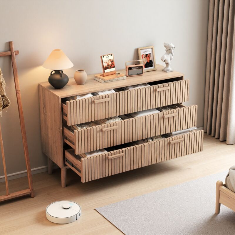 Commode Chêne Sonoma Mat avec 6 tiroirs 120 cm Meuble Rangement, Chambre Adulte