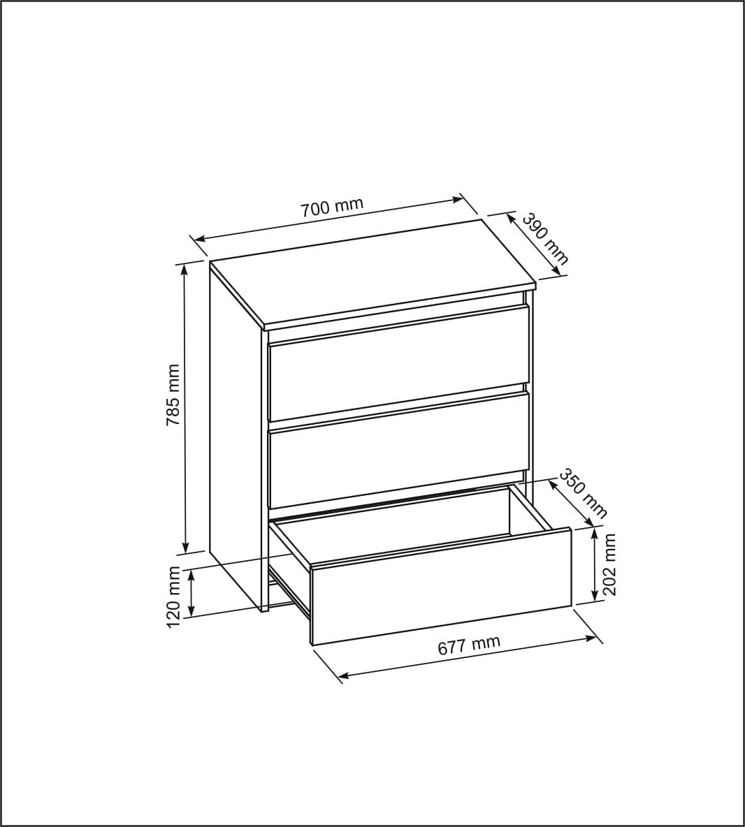 Commode Blanche Mat avec 3 tiroirs 70 cm Meuble Rangement Chambre Adulte