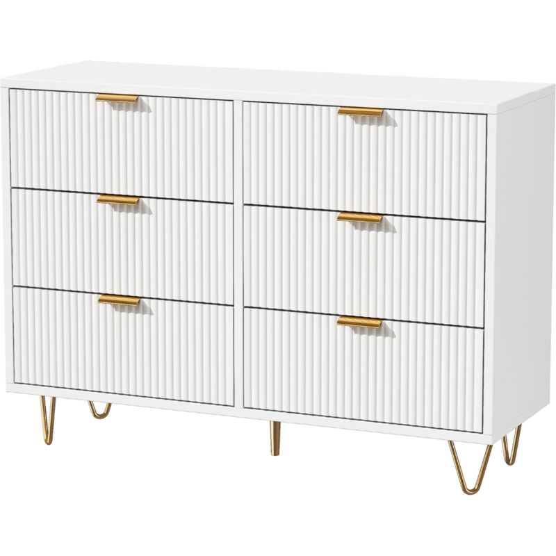 Commode blanche 6 tiroirs 100x34x72.5 cm Meuble de Rangement Chambre, meuble de salon,buffet, armoire - style moderne