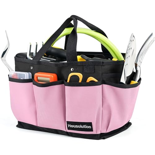 Housolution Sac Fourre-Tout de Jardinage, Sac de Rangement d'Outil de Jardin et Organisateur à la Maison avec des Poches, Résistant à l'usure et Réutilisable, Rose