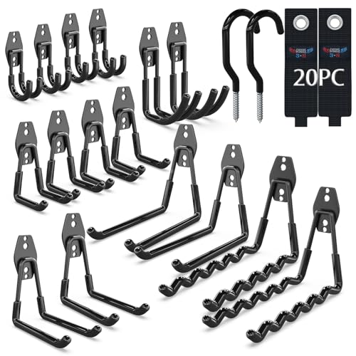 3-H Crochet Mural Garage 20pcs,Porte Outils Mural pour Rangement Atelier Jardin, Crochet Muraux en Acier Renforcé avec 3 Points de Soudure pour Êchelle,Vélo,Tuyaux,Outil électrique,Noir