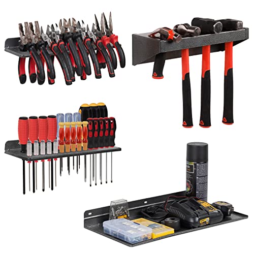 AHOWPD Lot de 4 organiseurs de tournevis, pinces en métal, porte-marteaux, tournevis, outils à main et support de rangement mural pour garage, atelier, établi