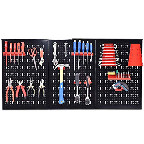 COSTWAY Organiseur Mural en Panneau Perforé, Kit de Rangement d'Outils en Métal avec 3 Panneaux Perforés 25 Accessoires de Suspension, Porte-outils Standard Fixé au Mur, pour Garage, Atelier, Entrepôt