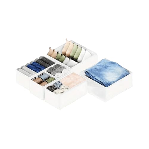 Homsorout Lot de 12 organiseurs de tiroirs de penderie - Pliables - Boîte de rangement en tissu - Système de rangement pour pantalons, vêtements, chaussettes, blanc