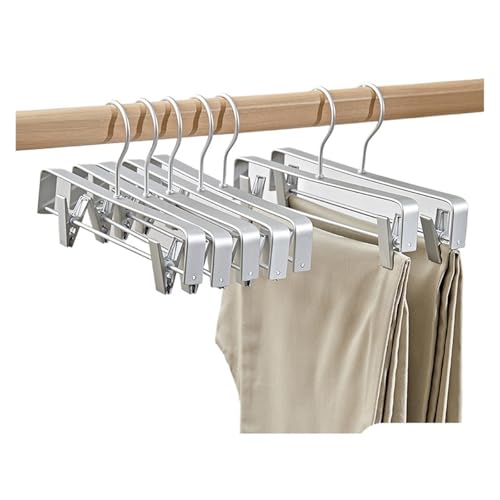 Cintre pour Pantalons Et Jupes Lot de 5 cintres Rangement for Pantalons, Chaussettes, Jupes, Femmes, avec Pinces à Linge antidérapantes Amovibles(Sliver)