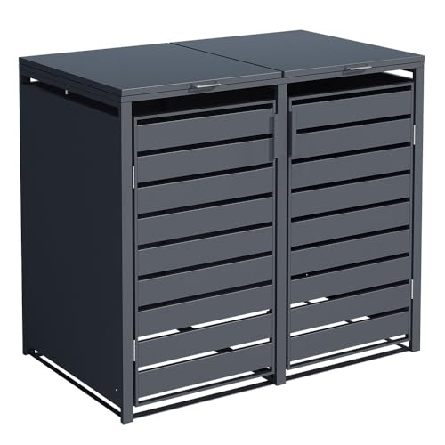 Boîte de rangement pour poubelle à roulettes, couvercle de poubelle à roulettes, pare-vue en acier (1, métal anthracite)