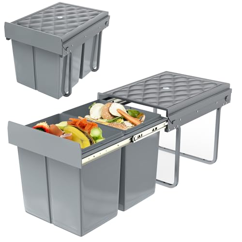 UISEBRT Poubelle de cuisine Meuble de rangement encastrable Poubelle extensible Système de tri des déchets avec glissière Plastique Gris【2x15L】