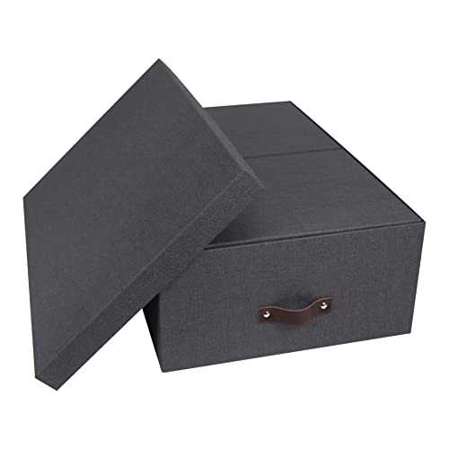 Bigso Box of Sweden set de 3 boîtes de rangement pour la chambre, le bureau ou la salle de bain – caisses de rangement empilables – boîte avec couvercle en panneaux de fibres et papier – gris foncé