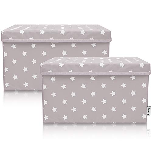 LIFENEY Lot de 2 boîtes de rangement pour enfants (37 x 25 x 21 cm) I Panier de rangement pour chambre d'enfant et salon I Boîtes de rangement pour enfants (étoile gris clair)