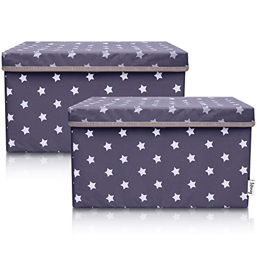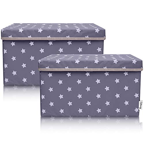 LIFENEY Lot de 2 boîtes de rangement pour enfants (37 x 25 x 21 cm) I Panier de rangement pour chambre d'enfant et salon I Boîtes de rangement pour enfants (étoile gris foncé)