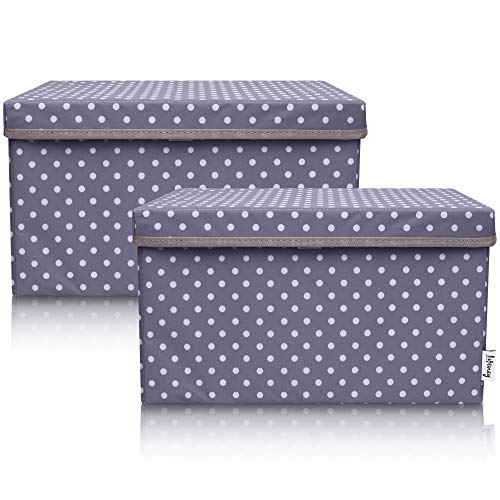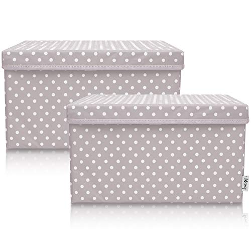 LIFENEY Lot de 2 boîtes de rangement pour enfants (37 x 25 x 21 cm) I Panier de rangement pour chambre d'enfant et salon I Boîtes de rangement pour enfants (Points gris foncé)