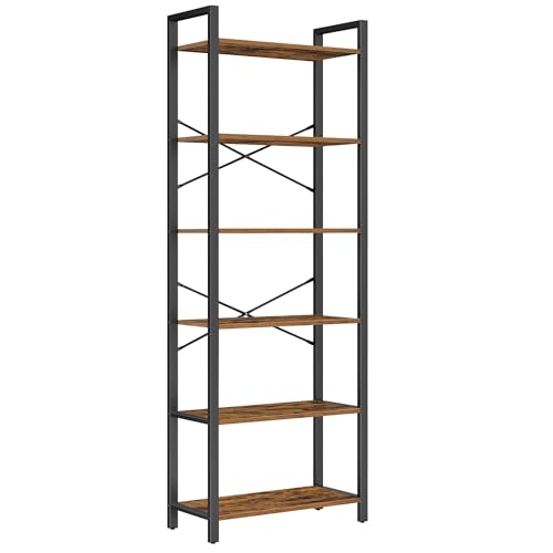 VASAGLE Étagère 6 Niveaux, Bibliothèque, Meuble de Rangement, pour Bureau, Salon, Chambre, 30 x 66 x 186 cm, Style Industriel, Marron Rustique et Noir d'Encre LLS062B01