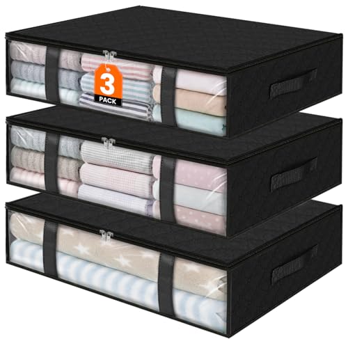 Fab totes Lot de 3 sacs de rangement pliables pour vêtements, couvertures, boîtes de rangement pour organiser la chambre, le placard, les vêtements, les couettes, l'organisation et le rangement avec