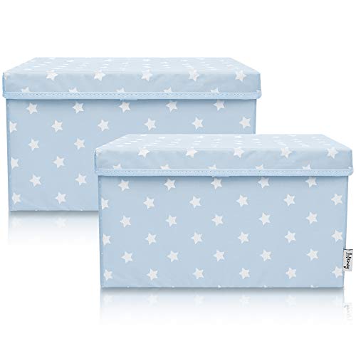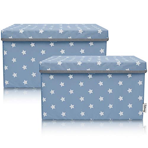 LIFENEY Lot de 2 boîtes de rangement pour enfants (37 x 25 x 21 cm) I Panier de rangement pour chambre d'enfant et salon I Boîtes de rangement pour enfants (étoile bleu clair)