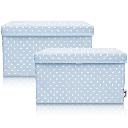 LIFENEY Lot de 2 boîtes de rangement pour enfants (37 x 25 x 21 cm) I Panier de rangement pour chambre d'enfant et salon I Boîtes de rangement pour enfants (points bleu clair)