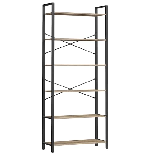 VASAGLE Étagère 6 Niveaux, Bibliothèque, Meuble de Rangement, pour Bureau, Salon, Chambre, 30 x 80 x 186 cm, Style Industriel, Marron Chameau et Noir d'Encre LLS082B50