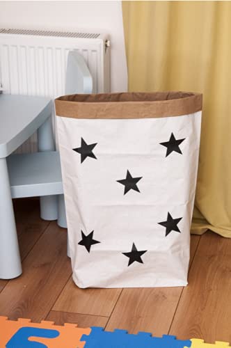 Nukido Panier à jouets - Seau à jouets - Panier de rangement pour chambre d'enfant - Rangement pour vêtements - Décoration - Organiseur de linge et de couvertures - Blanc avec étoiles - 60 cm x 35 cm