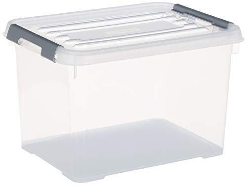 CURVER Boîte de Rangement Handy Plus 20L - Boîte de Rangement Multifonction - Pour Chambre, Bureau, Garage, Cabanon, Buanderie - Fermeture Rapide à poignées - 40 x 29 x 26 cm - Transparent