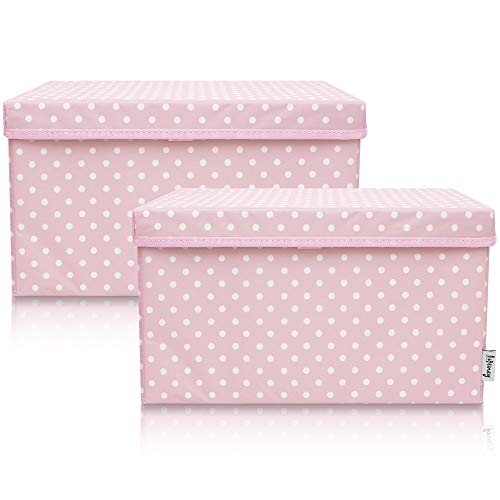 LIFENEY Lot de 2 boîtes de rangement pour enfants (37 x 25 x 21 cm) I Panier de rangement pour chambre d'enfant et salon I Boîtes de rangement pour enfants (pois roses)