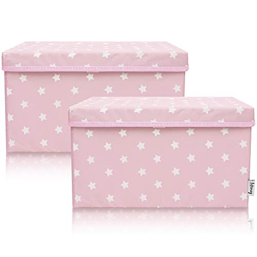 LIFENEY Lot de 2 boîtes de rangement pour enfant (37 x 25 x 21 cm) I Panier de rangement pour chambre d'enfant et salon I Boîte de rangement pour enfant (étoile rose)