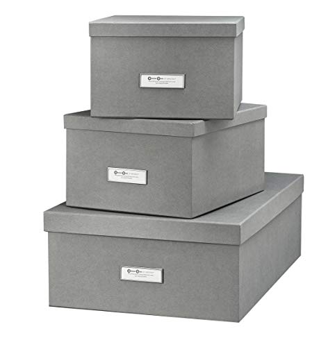 Bigso Box of Sweden Set de 3 boîtes de Rangement pour la Chambre, Le Bureau ou la Salle de Bain – caisses de Rangement empilables – boîte avec Couvercle en Panneaux de Fibres et Papier – Gris