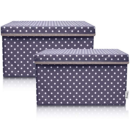 LIFENEY Lot de 2 boîtes de rangement pour enfants (37 x 25 x 21 cm) I Panier de rangement pour chambre d'enfant et salon I Boîtes de rangement pour enfants (Anthracite Pois)