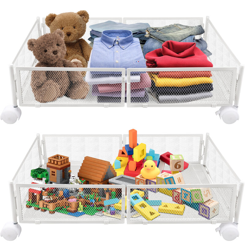 Boîtes de rangement sous le lit,Haloyo®,avec roulettes,en métal, pour chambre à coucher,pour Vêtements Jouets Livres Chaussure,blanc