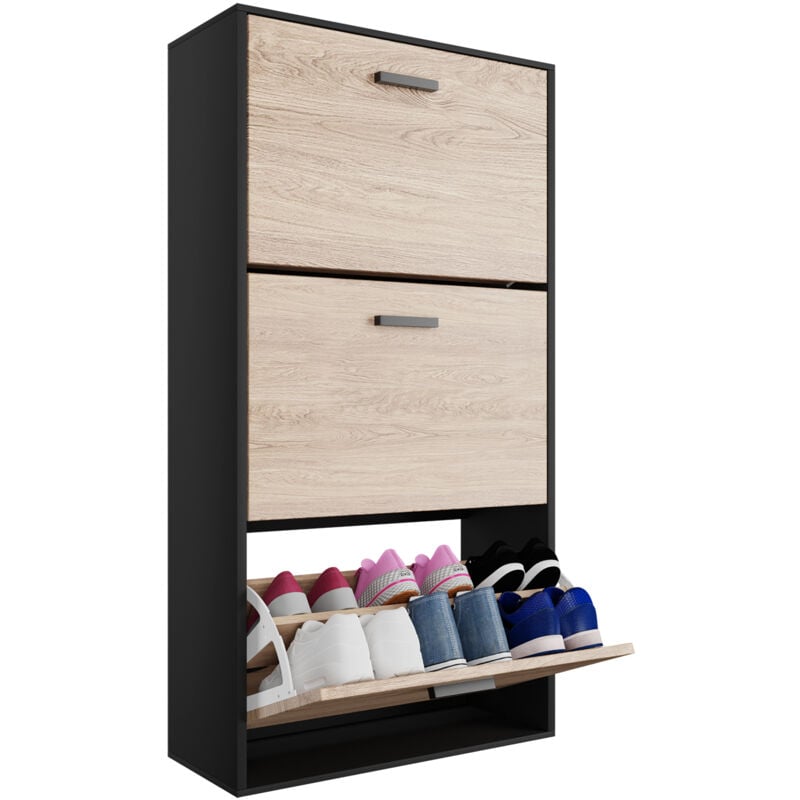 CASABEL Meuble Rangement Chaussure 18 Paires - Pour Entree Couloir - 60x24x113 cm - Noir