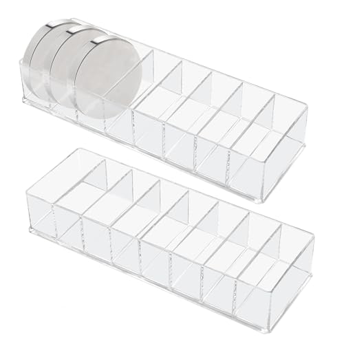 Dokeno Boîte de Rangement Maquillage, 2 PCS Plastique Organisateur de Maquillage à 8 Emplacements, Clair Support de Rouge à Lèvres, Makeup Rangement pour Tiroir, Coiffeuse, 25,5 × 8,8 × 4,7 CM