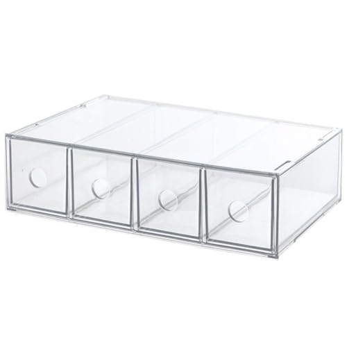 JessLab Organisateur en Acrylique, Lot de 4 Rangement Maquillage Transparent pour Coiffeuse, Comptoir, Salle de Bain, Design Empilable pour Cosmétiques, Bijoux et Fournitures de Bureau, 1 Compartiment