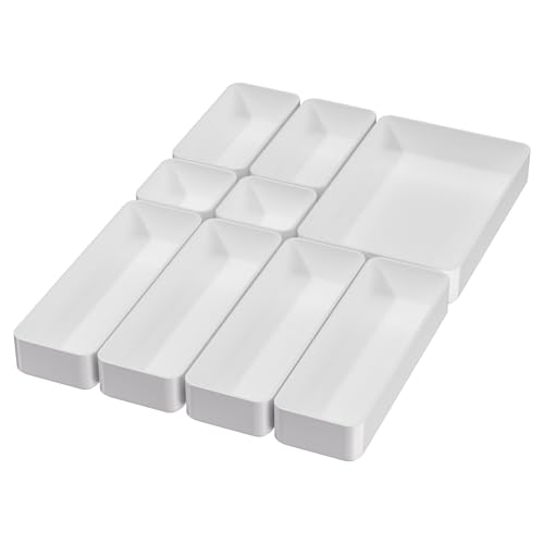 CHANCETSUI Lot de 9 plateaux de rangement empilables multifonctionnels pour coiffeuse, salle de bain, cuisine, bureau – Organisateurs de tiroirs en plastique disponibles en 5 couleurs, blanc