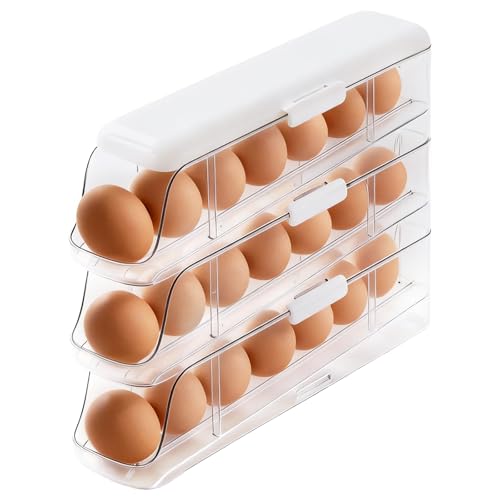 3 Niveaux Distributeur Oeuf Frigo, Récipient de Stockage d'oeufs à Roulement Automatique économiser l'espace, Porte-œufs Rangement pour Récipient à oeufs à roulement automatique pour réfrigérateur