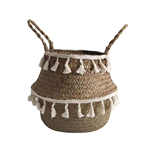 LINSINCH Cache Pot Jardinage Outillage De Jardin DéCoration Outils Seagrass Panier en Osier Pot De Fleurs Panier De Rangement Pliant Panier pour VéGéTale IntéRieure (Blanc 22×20cm)