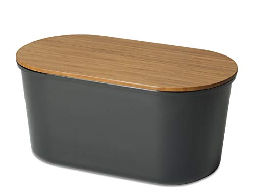 ECHTWERK "FRESH" boîte à pain en mélamine, avec couvercle/planche à découper en acacia, boîte de rangement pour pain 1 kg, noir, 37 × 22 × 17 cm
