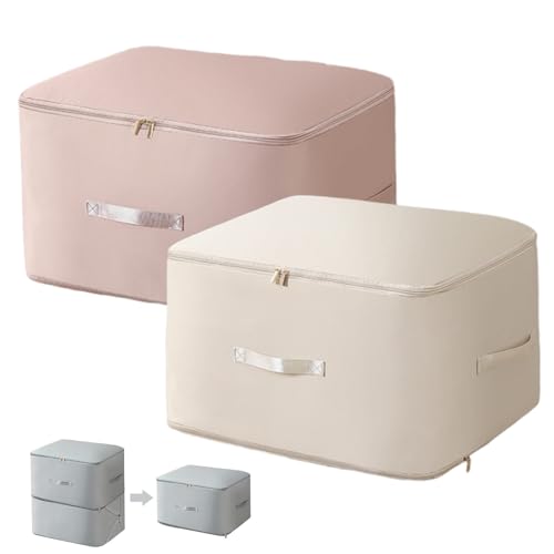 AIOR 2Pcs 66L Sac de Rangement Vetement Pliable avec Armature Métallique, Grande Boite Rangement Vetement pour Couettes, Couvertures Jouets VêTements