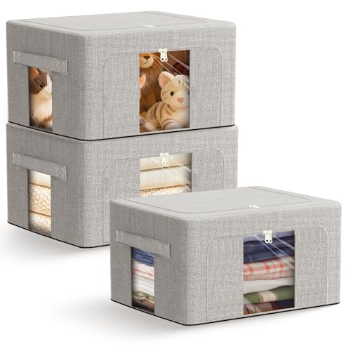 AIOR 3Pcs 66L Sac de Rangement Vetement Pliable avec Armature Métallique, Grande Boite Rangement Vetement pour Couettes, Couvertures Jouets VêTements