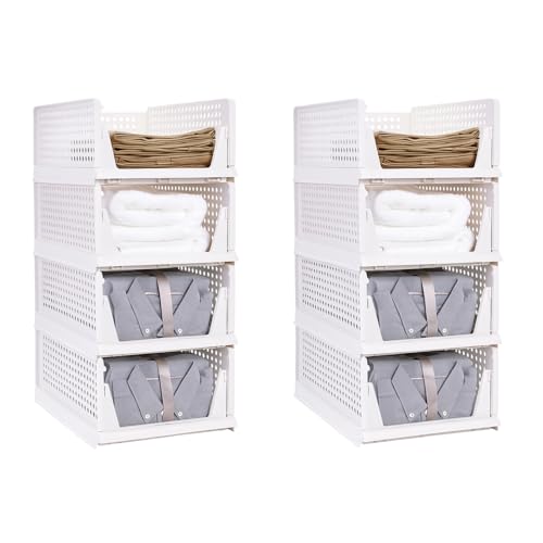 8 PCS Organisateur Empilable Tiroir, Vetement Armoire Empilable Tiroir Coulissant, Rangement Vetement pour Placard, Cuisine, Salle de Bain, Chambre à Coucher (Blanc, Lot de 8, 33.5*43*72 cm)