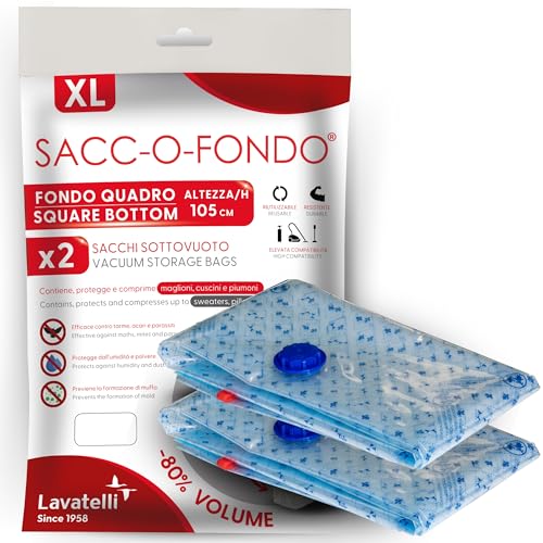 Lavatelli Sac de Rangement Sous Vide XL - Lot de 2 Sacs avec Aspirateur, Compression Voyage ou Dressing, Rangement Sous Lit, 80x35x105 cm