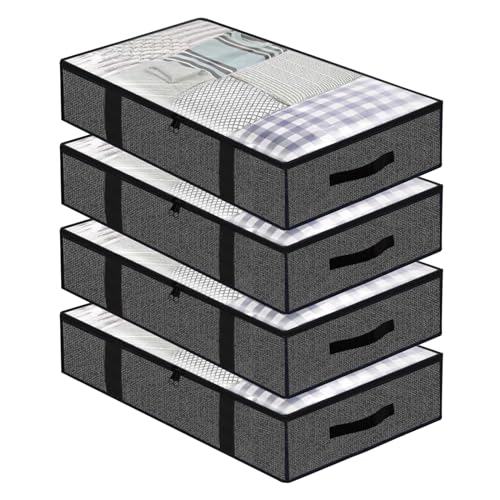 AiQInu Sac de rangement sous lit, Lot de 4 rangement sous lit Pliable Closet Organizer Sac Souple Grande Capacité avec Fenêtre Transparente Poignées Renforcées Organisateur à Glissière Non-tissé