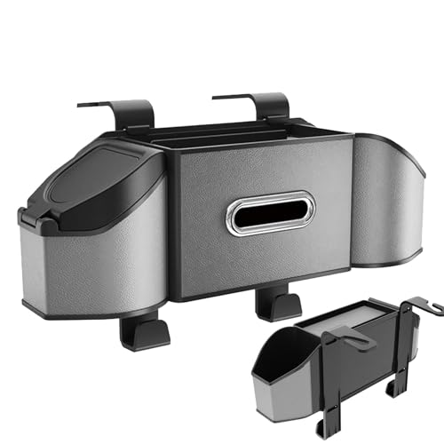 GUWINA Organisateurs et rangement de siège de voiture, organisateur de chargement et d'épicerie pour siège avant ou arrière, avec couvercle et 1 poche en filet, 2 porte-gobelets et 4 poches (gris)