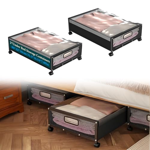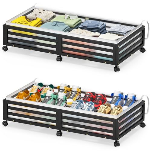 Fabater Rangement Sous le Lit avec Roulettes, Bacs de Rangement Sous le Lit à Roulettes en Métal de Grande capacité, Conteneurs de Rangement Sous le Lit pour Chaussures et Vêtements