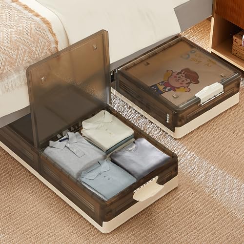 Niwugady Lot de 2 boîtes de rangement pliables sous le lit avec roulettes - Marron transparent - 100 x 25 x 50 cm